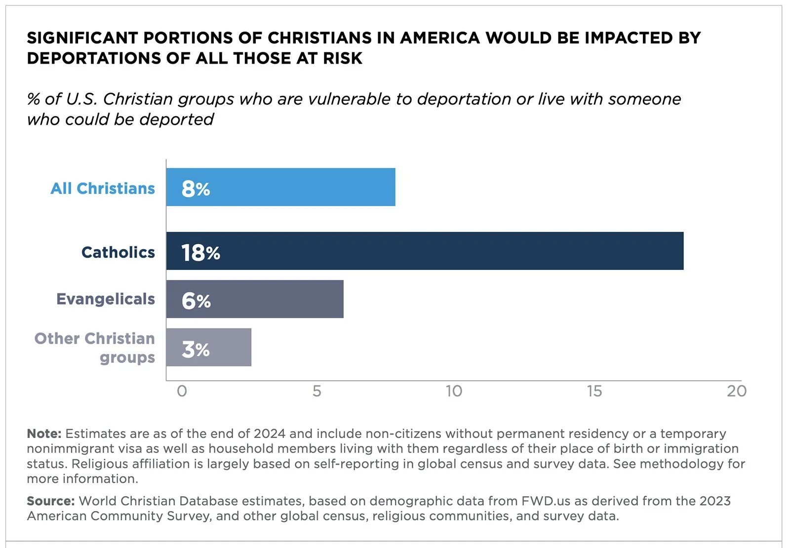 Jack Jenkins, “Evangelical, Catholic Groups: 1 in 12 Christians Could Be Impacted By Trump Deportations,” Religion News Service, March 31, 2025, read online.